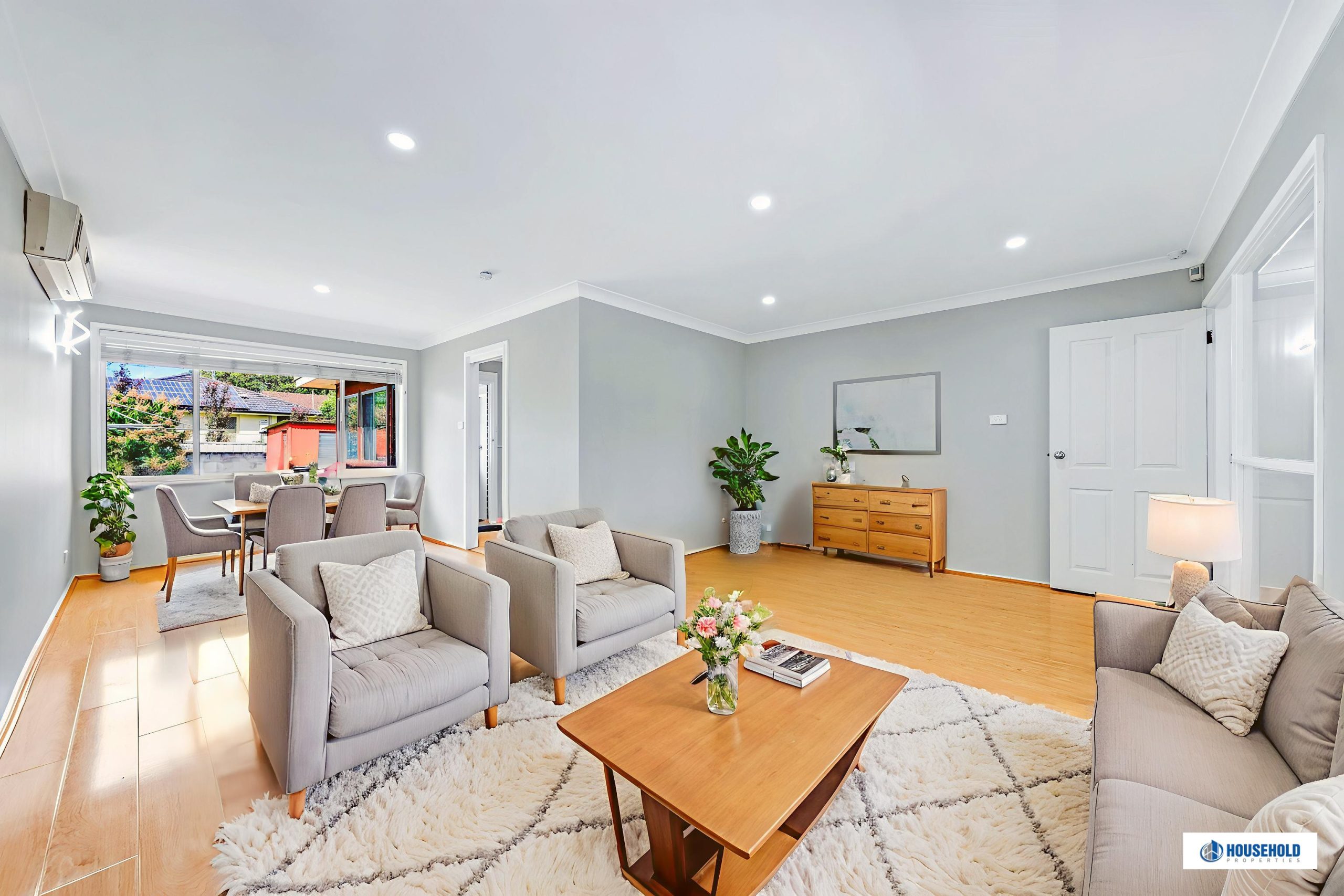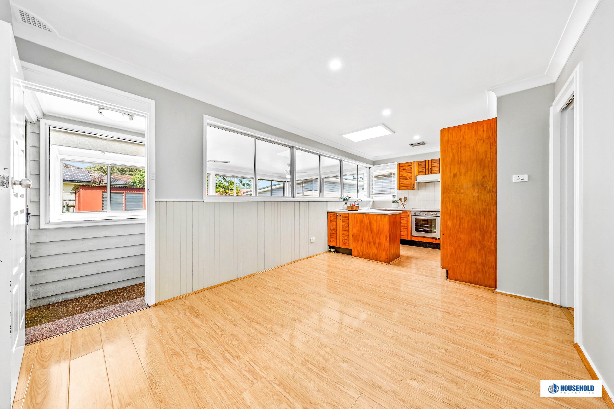 Large L shape casual family living/dining zone connecting through to study